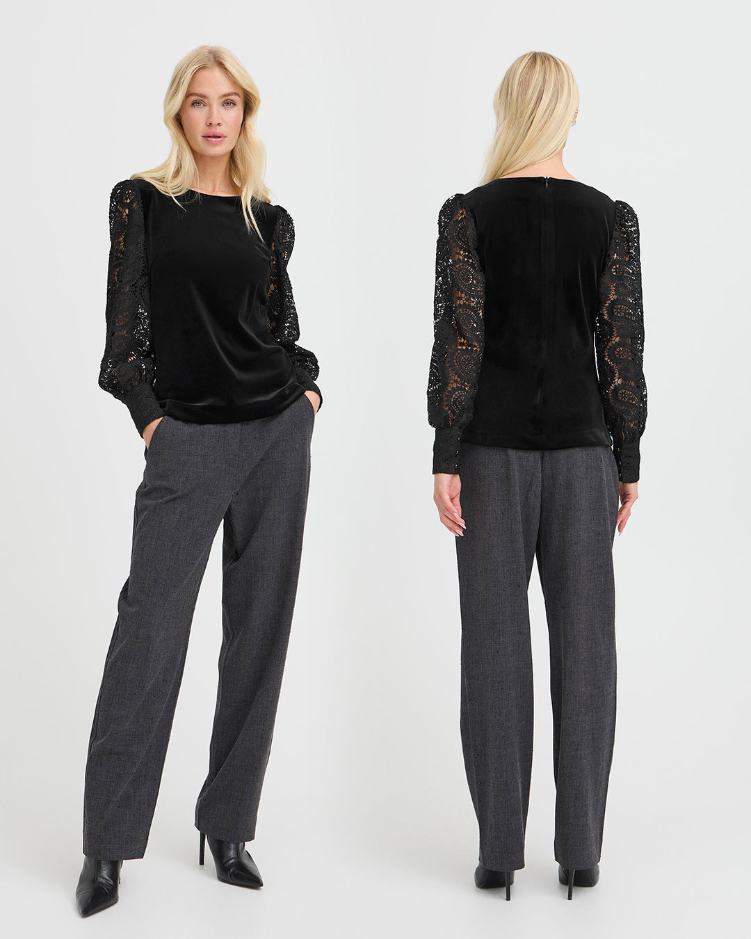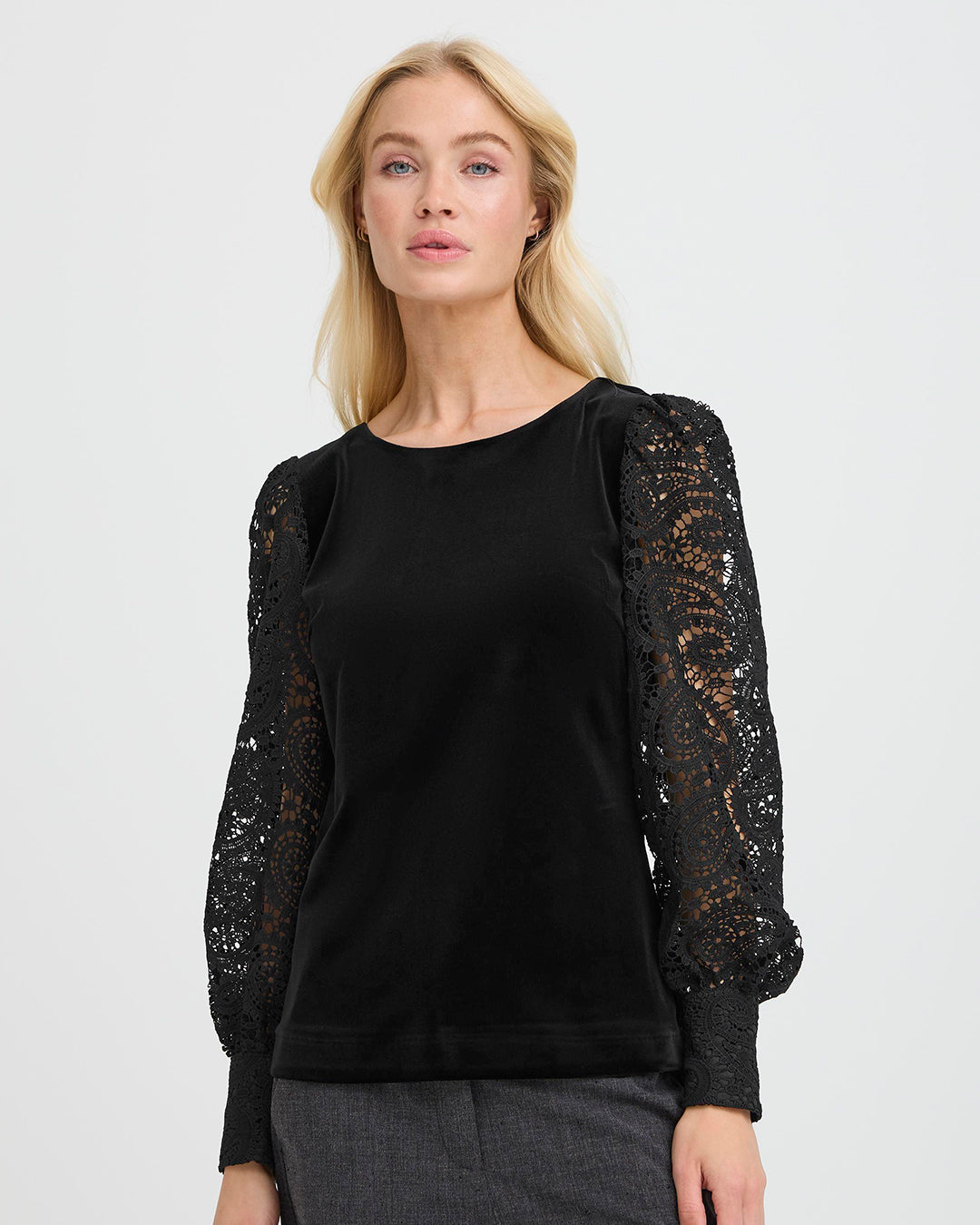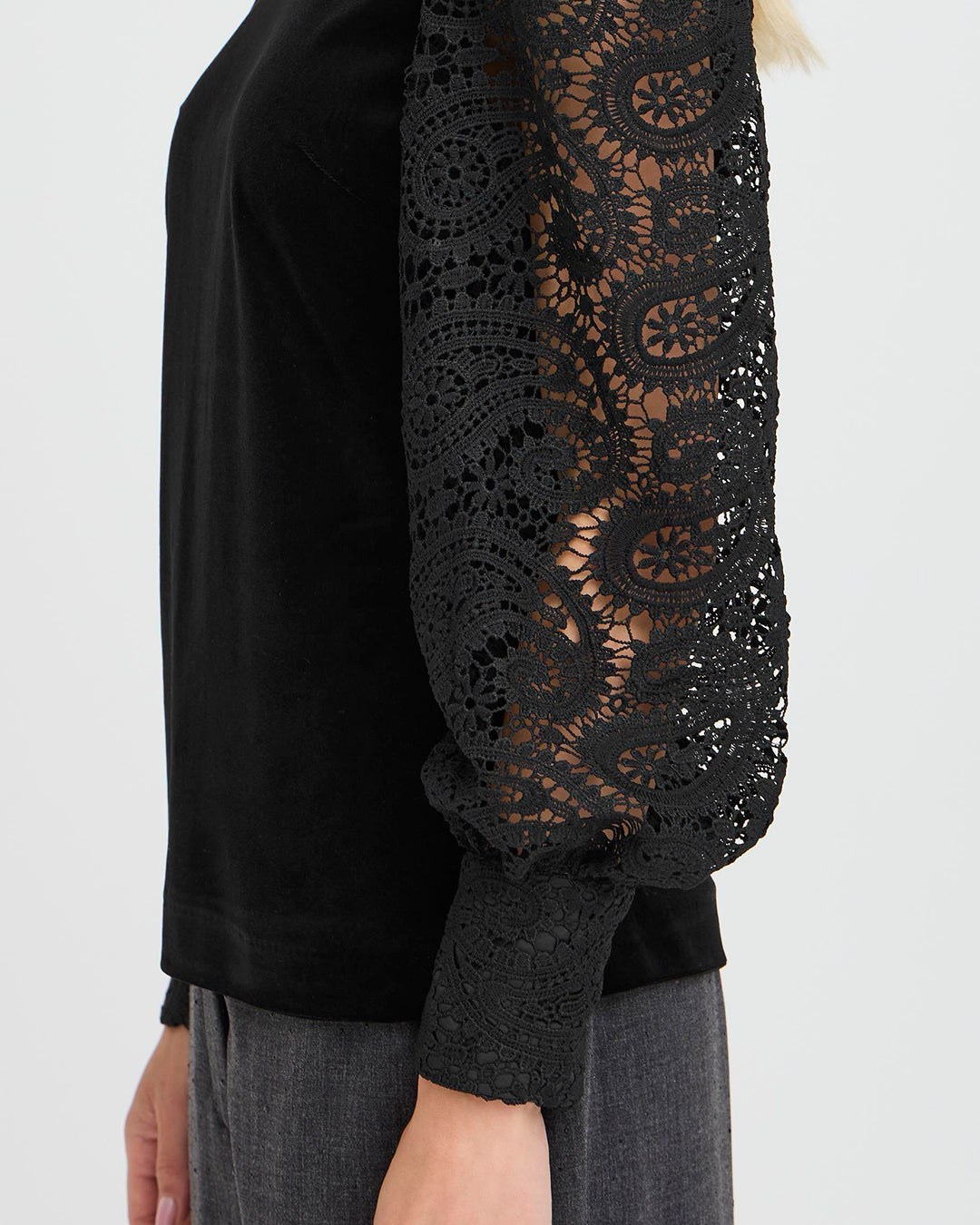 Velvet Top with Lace Sleeves by b.young