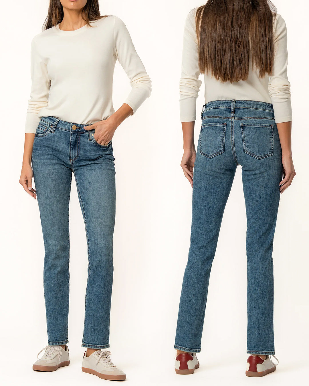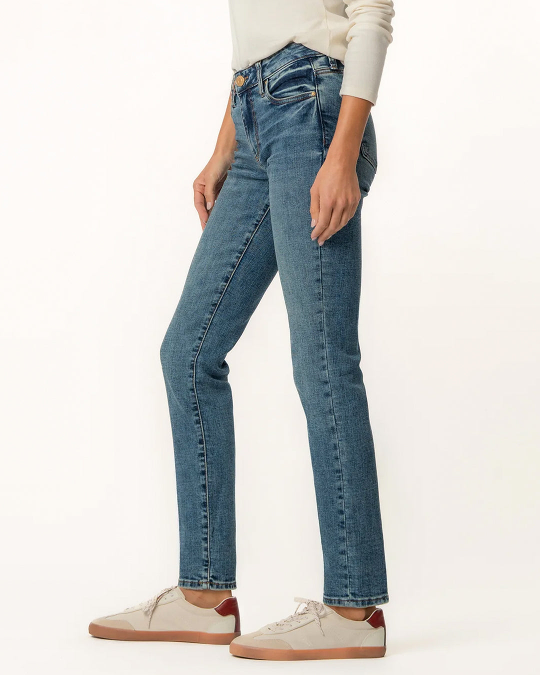 These mid-rise boyfriend jeans in a relaxed fit and classic medium wash are made from super stretchy fabric for ultimate comfort. Easily roll them up or down to switch up your look from casual to cool in seconds. Perfect for laid-back days with effortless style.
