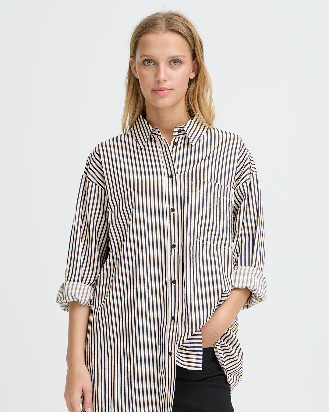 Long Stripe Button Up by ICHI