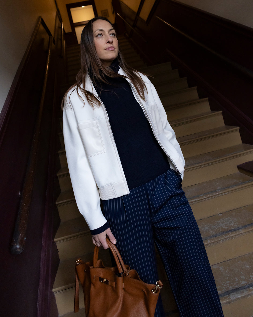 Wide Leg Pinstripe Trousers
