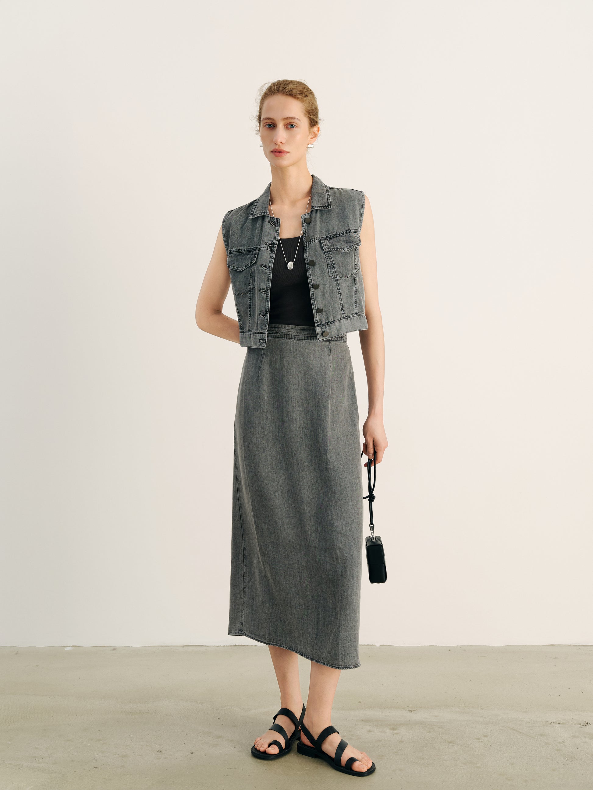 Chambray Denim Skirt by Meillure Moment. Matching Set Available.