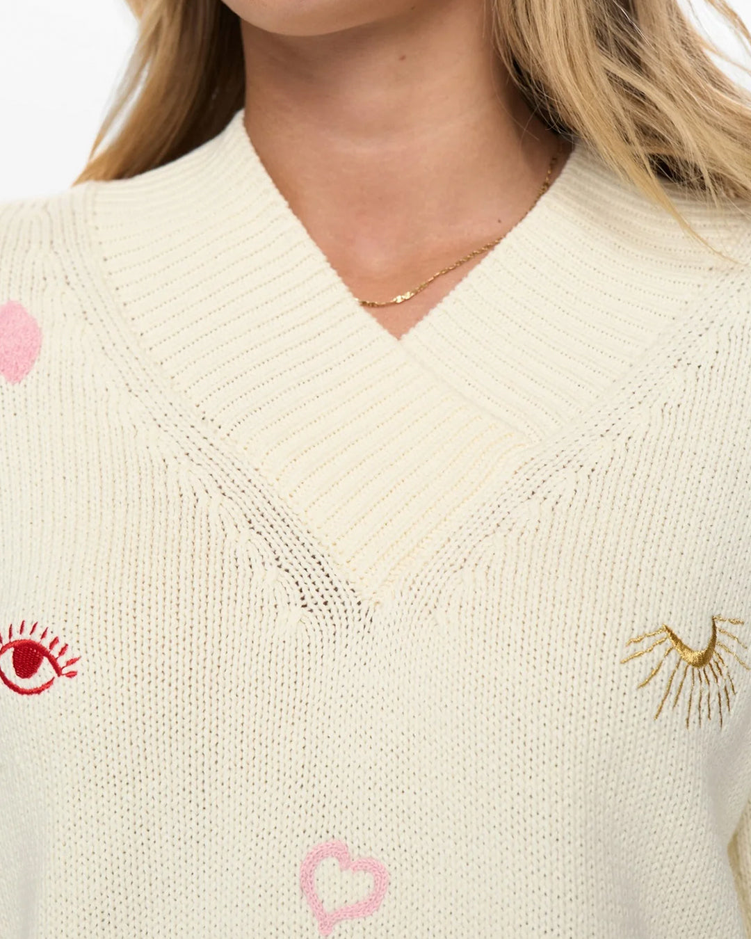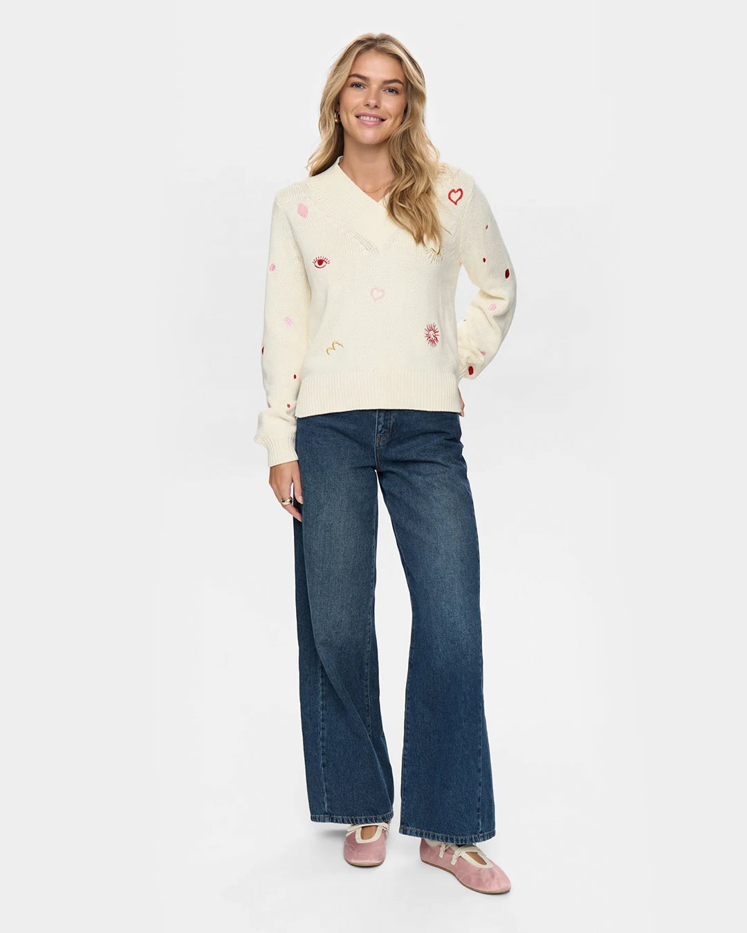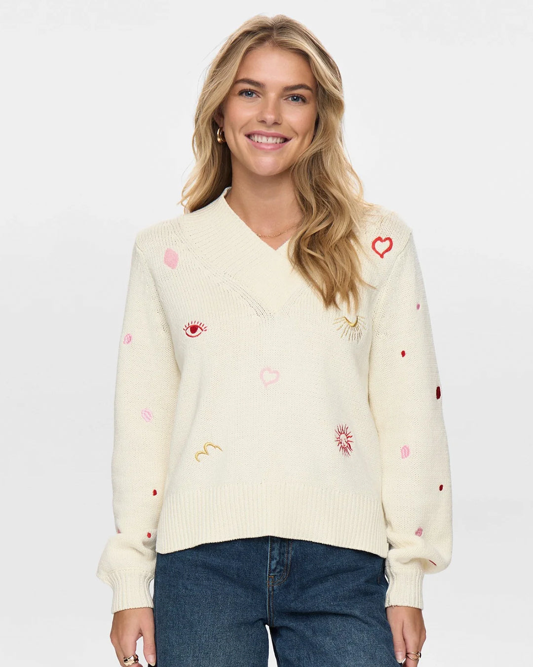 V-Neck Knit with Embroidered Details by Numph from Denmark