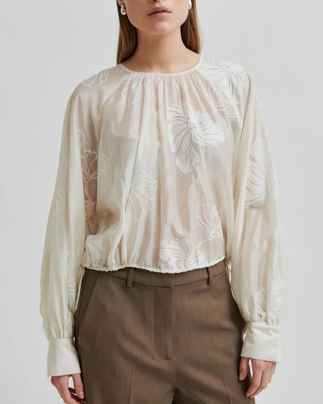 Made in soft and stretchy wool blend with fluffy texture. Featuring a ribbed collar and long sleeves. Ribbed hem at cuffs and bottom hem. Regular fit with slight frill at bottom hem.