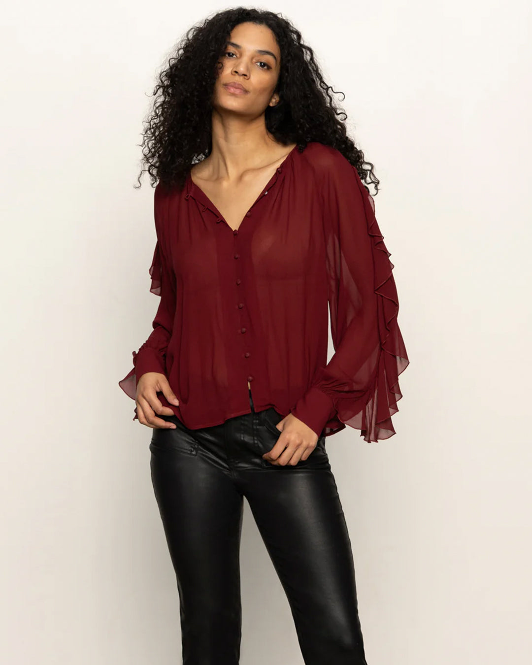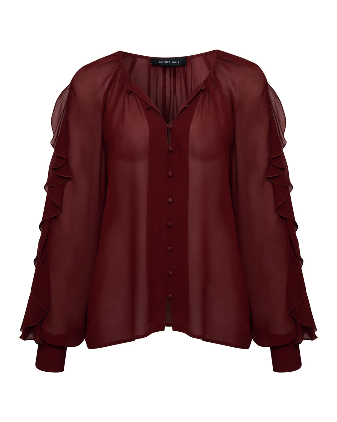 Long Sleeve Blouse with Ruffle Detailing Along Sleeve by Sanctuary