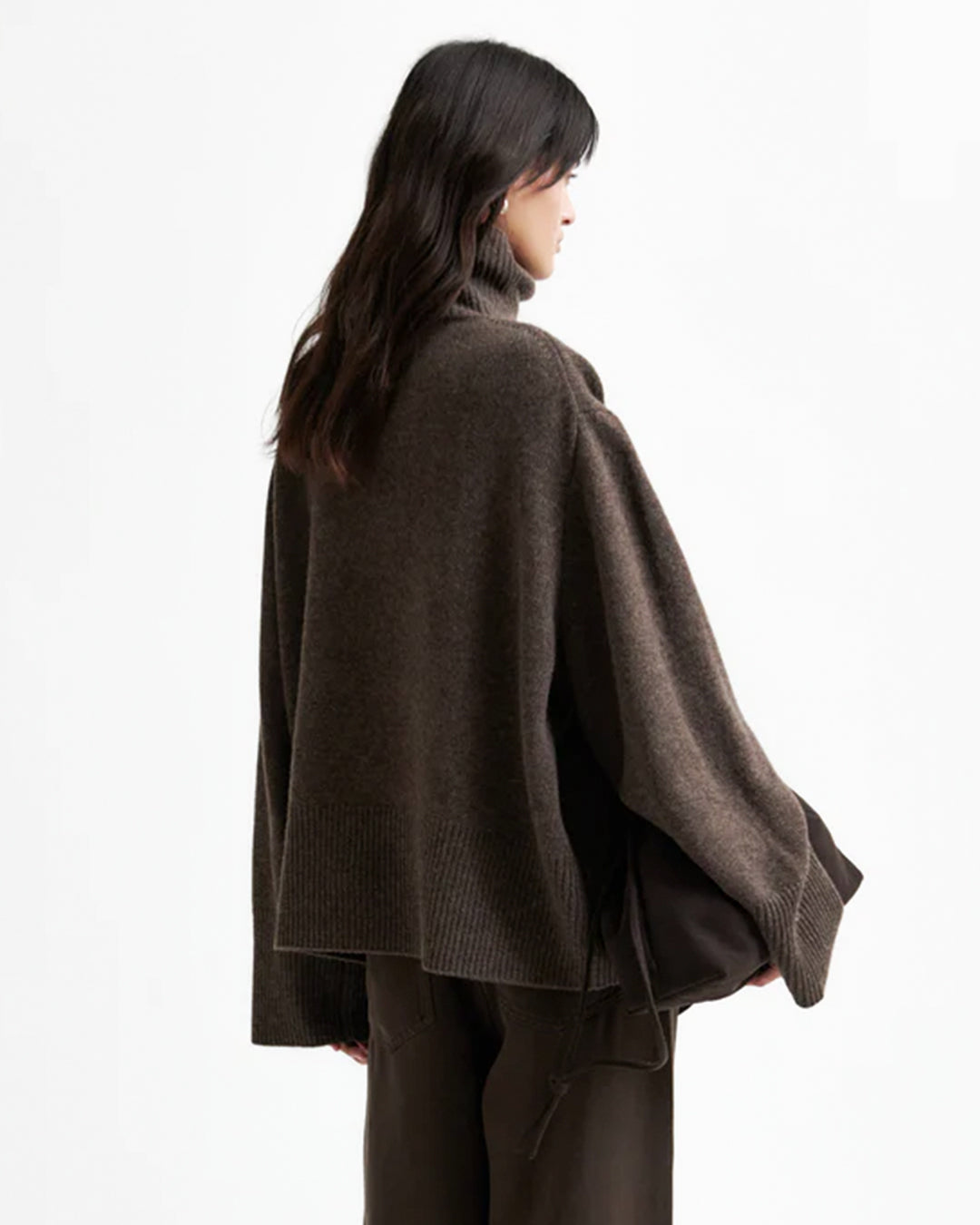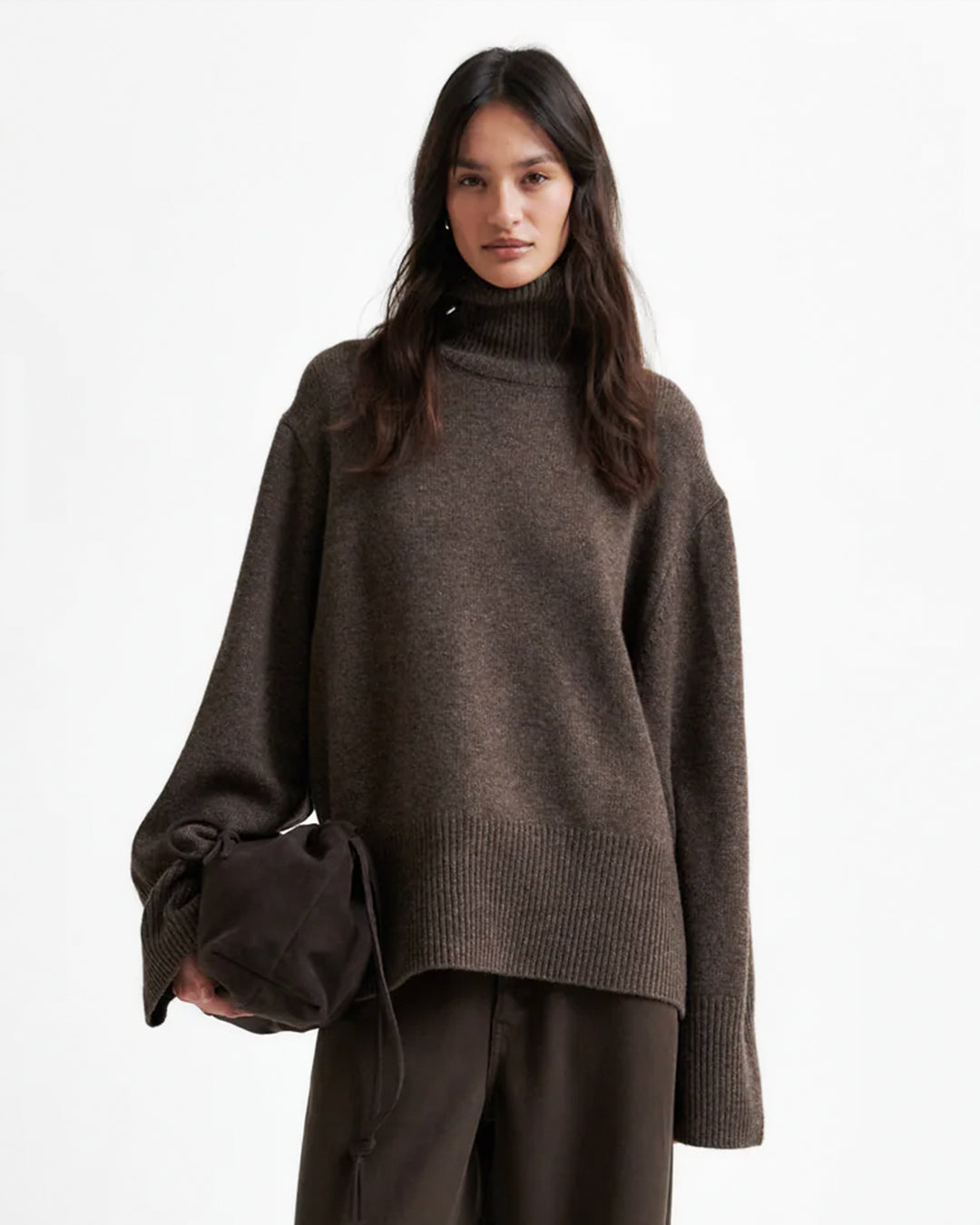 The pullover is made in soft wool. Featuring a turtle neck and dropped shoulders with wide, long sleeves. Ribbed neck, cuffs and bottom hem. Extra-wide fit.
