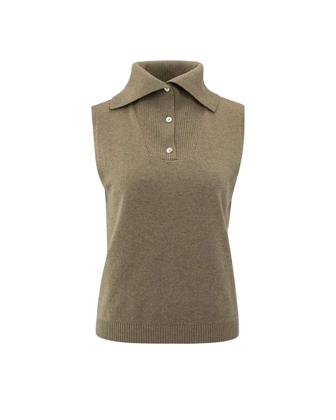 This sleeveless top is crafted from a soft fine-knit fabric and features a regular fit. Its designed with a classic ribbed collar and a button placket at the front for a refined touch. The wide ribbed hem adds a polished finish. Perfect for wearing on its own or layered over a blouse. The model is 175 cm and wears size S.